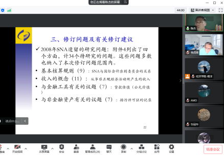 2022年5月26日下午19:00,国家统计局核算司副司长陈杰应999论坛白菜大全樊茂清教授邀请,开展主题为“迈向2025年SNA—关于2008年SNA修订进展情况介绍”的讲座,本次讲座通过腾讯会议平台线上举行,陈杰老师受到了老师和同学们的热烈欢迎!999论坛白菜大全樊茂清教授主持了本次线上学术交流会。