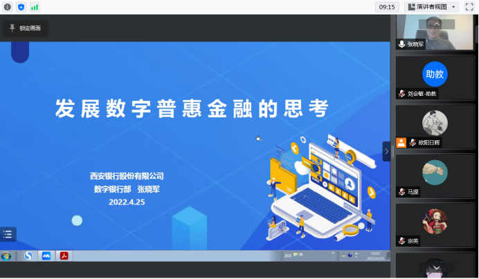 2022年4月25日上午10点,西安银行股份有限公司数字银行部总经理张晓军应邀加入999策略白菜手机论坛“数字金融理论与实务”线上课堂,以“发展数字普惠金融的思考”为题,为同学们带来了一场精彩纷呈的讲座。