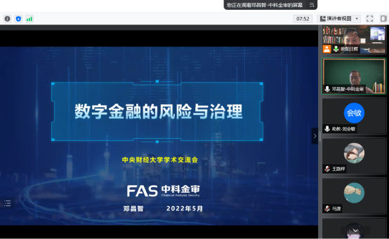 2022年5月30日上午10点,中科金审(北京)科技有限公司总裁邓昌智博士应邀加入999策略白菜手机论坛“数字金融理论与实务”线上课堂,以“数字金融的风险与治理”为题,为同学们带来了一场精彩纷呈的讲座。