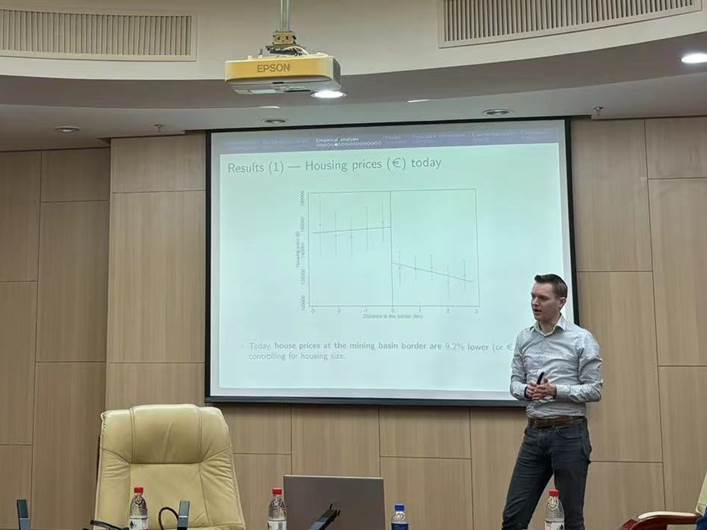 在讲座中,Hans教授以法国最大矿区的煤炭开采作为外生冲击来源,分析了住房存量质量和因劳动力聚集产生的溢出效应对城市衰退的影响,并估计了衰退持续时间和长期均衡结果。Hans教授发现,由于建筑存量和人口结构短期内难以改变,城市内部低质量住房的存在和低技能劳动力集聚会对当地经济产生长期负向影响。
