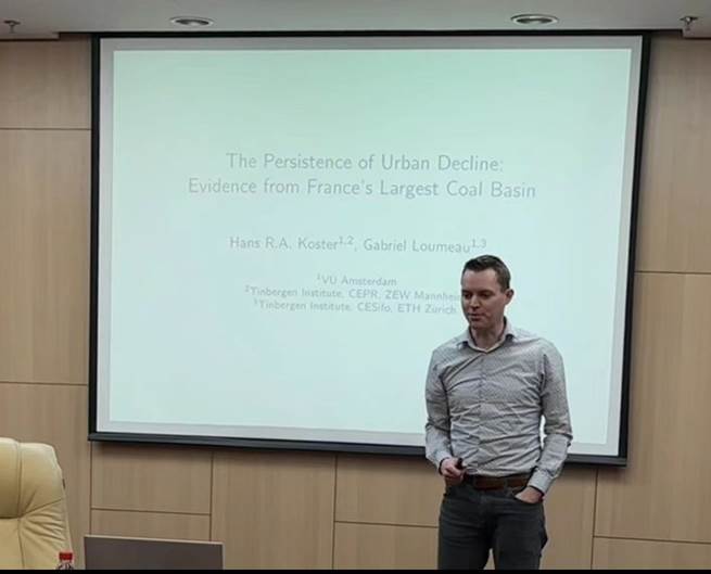 2024年4月4日上午,阿姆斯特丹自由大学的Hans Koster教授应邀开展了主题为“The Persistence of Urban Decline: Evidence from France's Largest Coal Basin”的讲座。本次讲座由999策略白菜手机论坛校长助理、999论坛白菜大全院长陈斌开教授主持,999策略白菜手机论坛党委书记郭冬梅教授、戴宏伟教授、戴若尘副教授、吴楠助理教授,北京交通大学经济管理学院王雅璨教授等多名师生参加。