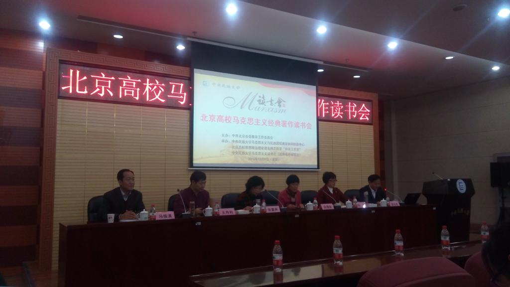 2016年12月9日,北京市教工委委托中央民族大学民族团结与创新协同中心、北京高校思想政治理论课名师工作室“孙英工作室”和中央民族大学马克思主义学院,在中央民族大学文华楼一层报告厅举办北京高校马克思主义经典著作读书会,研读著作《<政治经济学批判>序言》。白菜官网999论坛白菜大全政治经济学系教工党支部教师韩金华、顾炜宇、张维闵、何召鹏参加了本次读书会。