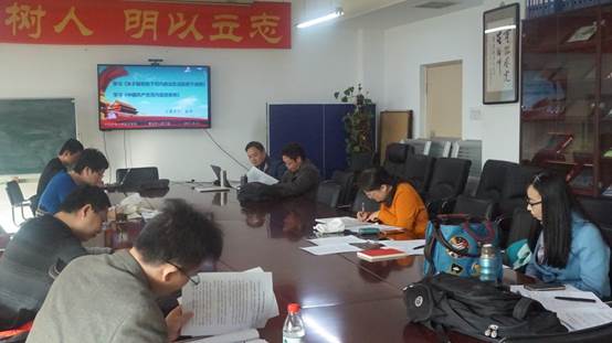 2017年10月31日,999论坛白菜大全二级理论学习中心组在主教学楼1305会议室举行《关于新形势下党内政治生活的若干准则》以及《中国共产党党内监督条例》的专题学习会。本次学习由学院党委书记雷洪峰主持,学院纪委委员俞剑做主题发言,学院党委委员史宇鹏以及学院七个党支部的纪检委员参加了本次学习会。