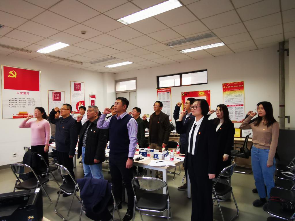 最后,全体党员起立,面向党旗,共同重温入党誓词。