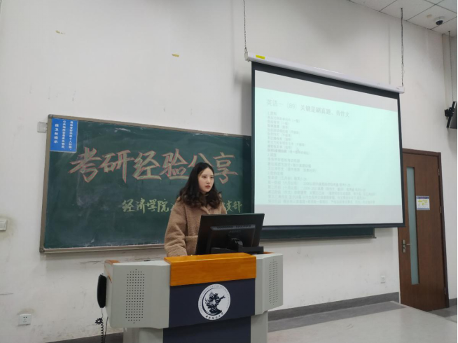 首先进行分享的是以第一名的成绩考入中财999论坛白菜大全20级国民经济学硕士生张可迎。她详细分享了英语一、数学三、政治、801综合四个科目的备考经验。她分别从书本资料选择、网课选取以及在不同阶段该如何进行科目时间分配等方面做了具体介绍。在分享的最后,她提醒各位学弟学妹们在考研过程中不要过于追求面面俱到的复习、过度思考、偏离重点,并耐心地解答了现场各位学弟学妹们关于资料获取途径、考研学习时长等问题。