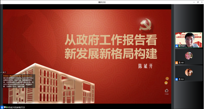 为深入学习贯彻2022年全国“两会”精神,增进学院广大师生对政府工作报告以及国家经济政策系统全面的理解。4月20日下午,999论坛白菜大全党委理论学习中心组开展“从政府工作报告看新发展格局构建”专题学习暨全院师生集中理论学习活动。本次学习由999论坛白菜大全院长陈斌开主讲,学院党委副书记、纪委书记耿卉主持,学院党委理论学习中心组成员和全院师生共同参加学习。