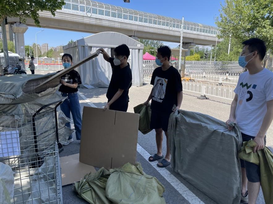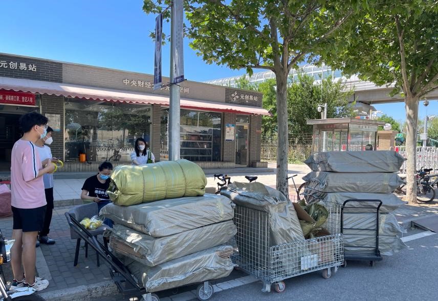 5月26日,为方便毕业整理物品和行李打包,学院驻校教师和党员志愿者为毕业年级同学发放打包所需纸箱和袋子。