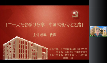 “四工程”即999论坛白菜大全“一二三四五”创优工程党建工作思路中的引航工程、牵手工程、先锋工程、特色工程四项基层党支部“对标争先”计划工程。“引航工程”充分发挥师生党员旗帜和引领作用,在学院党委的指导下,学院24个师生党支部积极开展原文研读、专题讨论、知识竞赛等多种形式的党的二十大精神学习活动,带领全体党员原汁原味学习报告原文,逐字逐句感悟报告内涵;“牵手工程”加强师生党支部联动,实现1+1>2的效果,学院教工党支部与学生党支部联合学习党的二十大报告,院党委委员、副院长伏霖为研究生党支部作主题为“二十大报告学习分享——中国式现代化之路”的专题讲座,学生党员站在青年党员角度分享学习感悟,师生党员实现良性互动;“先锋工程”促进学院样板支部和先进基层党组织等充分发挥先锋模范作用,带头认真学习热议党的二十大报告和中国共产党章程,全国首批高校“双带头人”教师党支部书记工作室——999论坛白菜大全经济史教工党支部率先开展党的二十大精神的学习研讨活动,提出经济学领域高校教师的责任担当与发展方向;“特色工程”创新基层党建工作思路,充分发挥学生朋辈教育引导作用,学院“宿舍指导员”和“学术活动项目组”两个功能型党支部发挥优势,在党员一对一联系学生宿舍以及学术活动创办中融入党的二十大精神内涵,实现将思想引领延伸到青年学生学习、生活方方面面的工作目标。