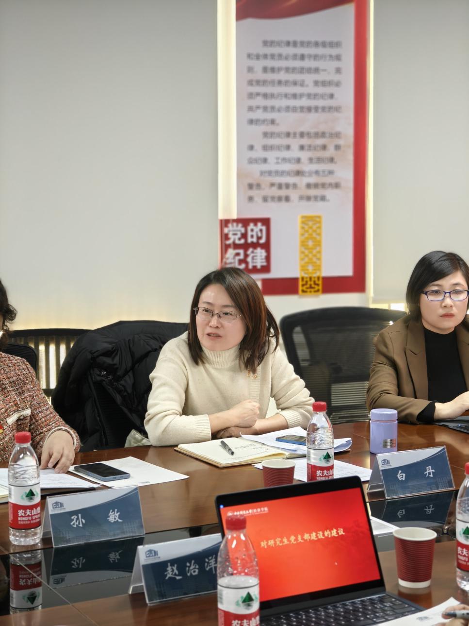 研究生部副部长白丹老师建议,学生党支部要对标“双百”“双创”目标,加强专业学习,提升科研实力,要将党建工作与学科特色紧密结合,从而实现专业发展和党员成长双赢。