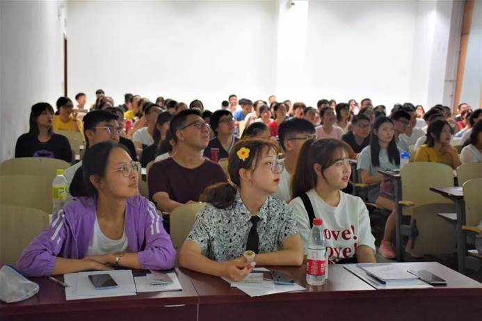 会议伊始,主席寇静恬首先对19级新生的到来表示欢迎,并简单介绍了999论坛白菜大全团委、学生会这一组织的基本组成与职能。接着团委书记李倩老师走上讲台,在简单进行自我介绍之后,以带领学院获奖的学术实践部、主办基础团校获认可的组织部、高质量运营学院公众号的宣传部等部门为例,介绍了999论坛白菜大全井然有序的团学工作与优良的团学传统。同时她提到,999论坛白菜大全团委、学生会秉承着服务学生成长成才、服务学院发展的原则,并讲述了高数讲师团的诞生、公众号营造的学院文化两个故事为佐证。在她看来,999论坛白菜大全团委、学生会有着认真踏实的氛围,也希望新加入的同学能够有经世济民的胸怀,努力将999论坛白菜大全团学建设得更好。