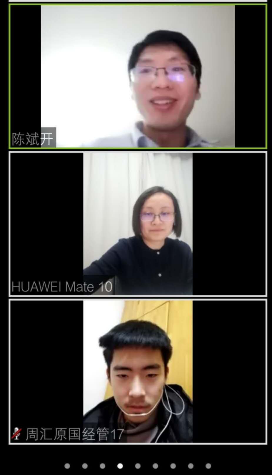 陈斌开院长称赞在鄂同学们所展现出的良好、积极向上的精神状态,感谢大家在疫情最严重最艰苦的地区为疫情防控所作的巨大贡献,表达了学院和老师们对同学们的牵挂,并逐一细致的回答了关于毕业生论文答辩、考研复试安排、就业政策变化和线上学习遇到困难等同学们关心的问题,嘱咐同学们注意保护自己和家人的身心健康,如有余力可以帮助周围更多的人,勉励大家充分利用好在家学习的时间,努力充实自己!