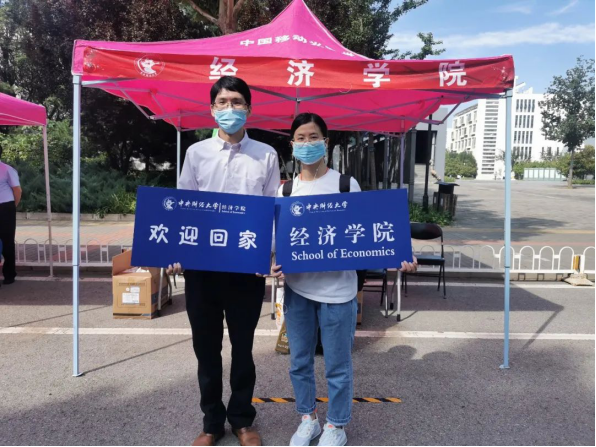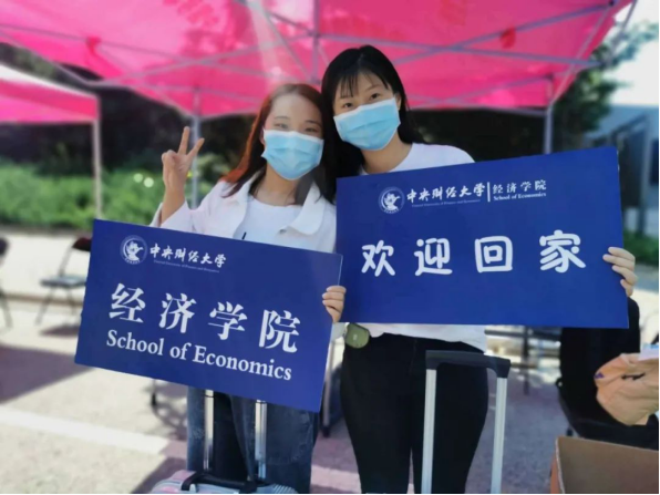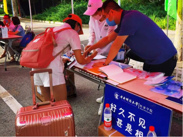 学院老师们用亲切的笑容和细致的服务迎接着每一位阔别已久的经院学子归来,登记复核信息,发放“爱心防疫口罩”,帮同学搬运行李。学院党委书记郭冬梅、院长陈斌开、学院党委副书记耿卉也在学院报到现场迎接返校的首批研究生,欢迎同学们平安归来,叮嘱同学们遵守校园防疫要求,尽快调整状态,在校安心学习,耐心解答大家关于校园管理的各类问题。阔别八月有余,回到久别重逢的校园,同学们的眼神中流露出激动与喜悦,美丽的校园顷刻焕发生机。