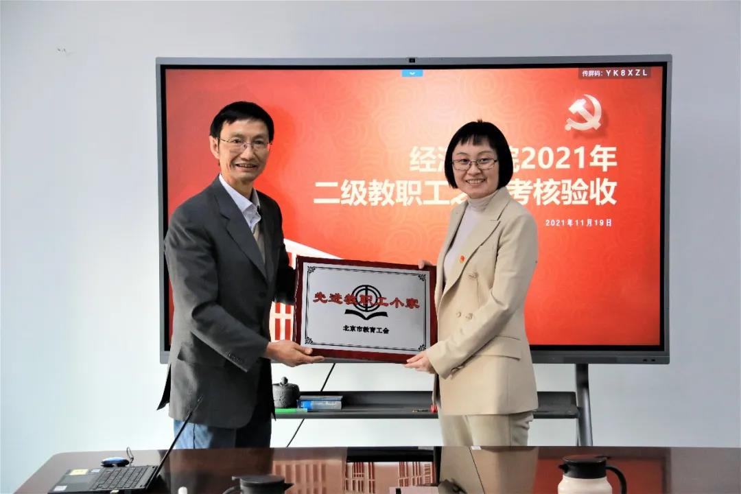 校工会常务副主席贺小海向999论坛白菜大全授牌“北京市先进教职工小家”