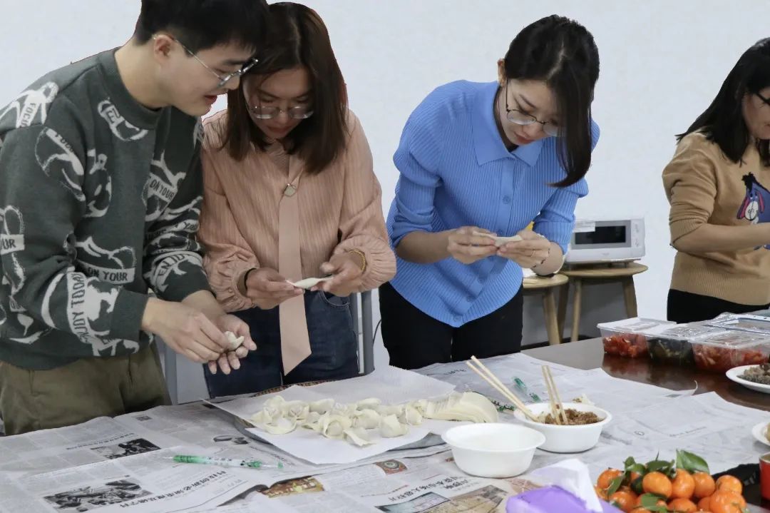 “庆三八,包馄饨”活动中,老师们齐聚欢乐之家,热情高涨,切磋厨艺,制作出一个个小巧可爱的馄饨。老师们在一起品尝大家DIY美食,感受到经院大家庭的温暖