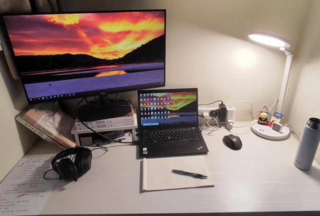 配文:希望能利用有限的书桌空间,实现最高的工作效率.