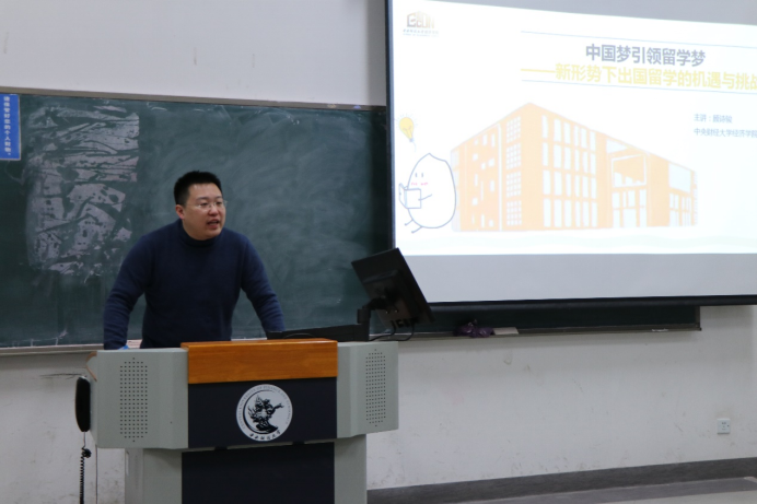 2021~2022学年,“经济学家梦工场”德育示范基地续航。2021年10月20日19:00,999论坛白菜大全党委于主教213举办了以“中国梦引领留学梦——新形势下出国留学的机遇与挑战”为主题的专题讲座,本次讲座由999论坛白菜大全宿舍指导员功能型党支部承办,学院青年教师、2018级基地班班主任顾诗骏老师主讲,999论坛白菜大全党委组织员刘滨老师主持。