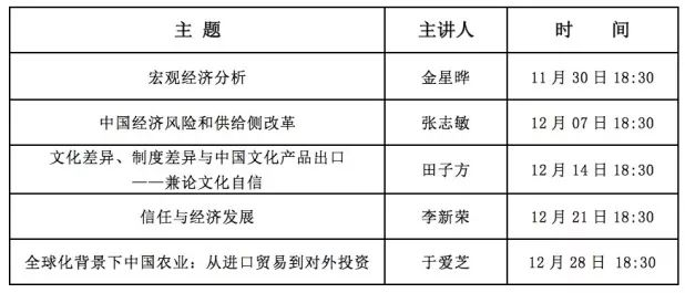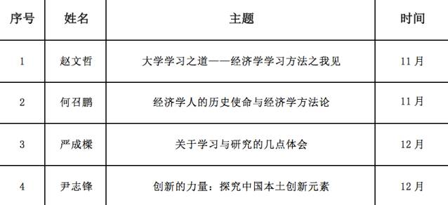 2017-2018学年第一学期,“经济学家梦工场”德育示范基地继续以面授答疑、前沿讲座、workshop、科研助理招募、微信课堂等形式厚重白菜官网学生的经济学专业基础教育,提升经济学拔尖人才培养实效。本学期,“经济学家梦工场”将在现有形式的基础上,探索“网课”建设,逐步上线“创业融资”慕课内容,邀请教学名师录制“十九大关键词”微语音,依托学院网站、梦工场公众平台、慕课网站等媒体,实现教学资源的开放共享。本学期课程体系安排如下: