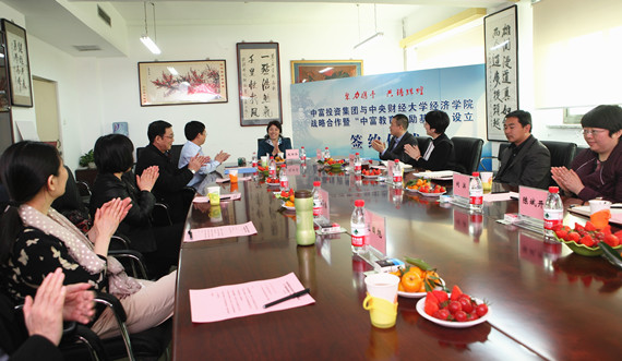 最后,赵丽芬副校长、周飞董事长共同为战略合作的执行机构“中富投资战略研究中心”揭牌。