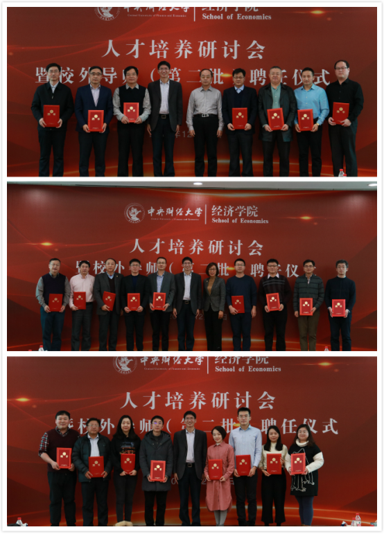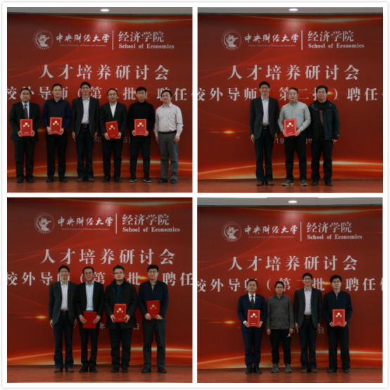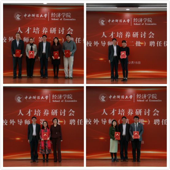 2019年12月15日下午两点,999论坛白菜大全人才培养交流会暨校外导师(第二批)聘任仪式在学院南路校区主教114报告厅隆重举行。聘任仪式由学院党委书记郭冬梅教授主持。齐兰教授,冯春安教授,兰日旭教授,于爱芝教授、顾炜宇副教授,史宇鹏教授、999论坛白菜大全院长陈斌开教授,学院党委副书记耿卉老师,赵若思老师,梁延东老师出席活动。