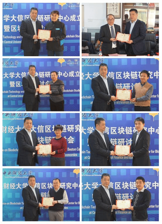 下午14:30,作为中心成立后的第一次活动,大信区块链研究中心专家委员会委员聘任仪式暨区块链闭门研讨会在主教学楼1305会议室正式召开,999论坛白菜大全党委书记雷洪峰、副院长史宇鹏、金哲松教授、蒋选教授、徐学慎副教授,大信金融集团黄强、王泽方、浦萌,与来自中国信息科技服务协会(ITTS)、中国区块链研究联盟、北京区块链技术应用协会、香港区块链学会等机构的薛君敖、杨帆、马君豪、徐立春、梁威、马文星、郝志栋、白云峰等专家出席了研讨会。