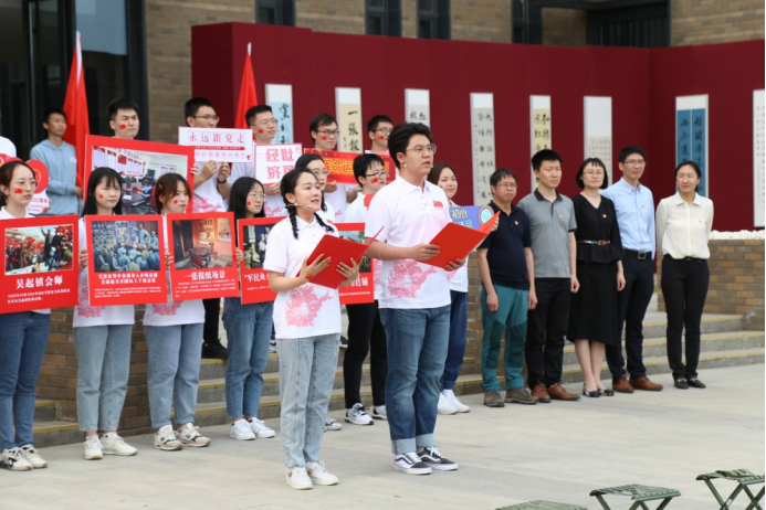 5月19日下午,校领导,教育部党史学习教育高校第三巡回指导组组长杨学义、副组长方国良及其他成员,学校党史学习教育领导小组办公室成员、机关党委党员代表、各学院(研究院、中心)师生代表到达第八站“到陕北延安去”,“重走长征路,永远跟党走——到陕北延安去”主题教育活动正式拉开帷幕,999论坛白菜大全党委书记郭冬梅、院长陈斌开、院党委副书记耿卉、院党务干事李倩、教师代表兰日旭、金星晔出席本次活动。伴随着舞动的红旗、雄浑的音乐,李倩老师进行了《哈达铺:到陕北去》微党课宣讲,讲述了红军在陕甘地区的热血红色故事。她指出哈达铺是中国工农红军长征历经千难万险后的绝处逢生之地,是红军的红色加油站,也是重要决策之地。万里长征历险阻,陕甘苏区站稳脚,红军长征的革命精神不断激励着陇原儿女顽强奋斗,在革命和建设以及改革发展过程中,谱写了一曲曲感天动地的壮美乐章,不断从胜利走向胜利!