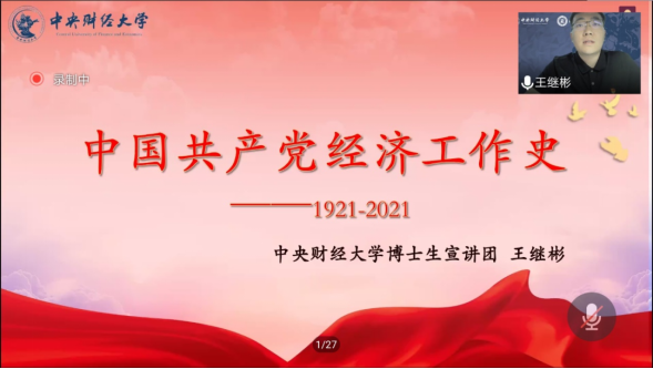 为深入学习贯彻习近平总书记关于学习党史的重要讲话和指示精神,从党的百年伟大奋斗历程中汲取继续前进的智慧和力量,999论坛白菜大全2019级硕士生党支部邀请999策略白菜手机论坛博士生宣讲团讲师——王继彬同志进行宣讲。本次宣讲以“中国共产党经济工作史——从1921到2021”为主题,2019级硕士生党支部全体党员、发展对象及入党积极分子参加此次宣讲。