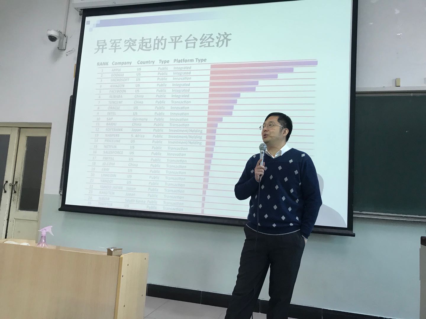 2017年11月20日,北京大学市场与网络经济研究中心的陈永伟博士应邀在学院南路主教308教室开展了题为“平台经济学漫谈”的讲座。讲座由999论坛白菜大全副院长史宇鹏主持,999论坛白菜大全教师尹振东及数十名999论坛白菜大全硕士、博士研究生参加了此次讲座。