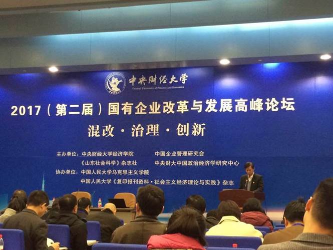 2017年11月18日,由999策略白菜手机论坛、中国企业管理研究会、《山东社会科学》杂志社、中央财大中国政治经济学研究中心联合主办,中国人民大学马克思主义学院、中国人民大学书报中心《复印报刊资料▪社会主义经济理论与实践》杂志协办的“混改·治理·创新——2017(第二届)国有企业改革与发展高峰论坛”在999策略白菜手机论坛学院南路校区隆重举行。来自中国社会科学院、中国人民大学、999策略白菜手机论坛、复旦大学、北京师范大学、首都经济贸易大学、北京信息科技大学、山东财经大学、中央党校、国家行政学院、中国国际经济交流中心、科技部中国软科学研究会等高校和科研院所的学者代表,来自中国企业联合会、山东高速集团、长城资产管理公司、长城战略咨询公司、上海融孚律师事务所、北京知本创业管理咨询公司等实务部门工作者,以及《求是》、《山东社会科学》、《国企管理》、《复印报刊资料·社会主义经济理论与实践》等重要期刊和中国领导网、中青网、《华人时刊》等媒体代表参加了本次论坛。