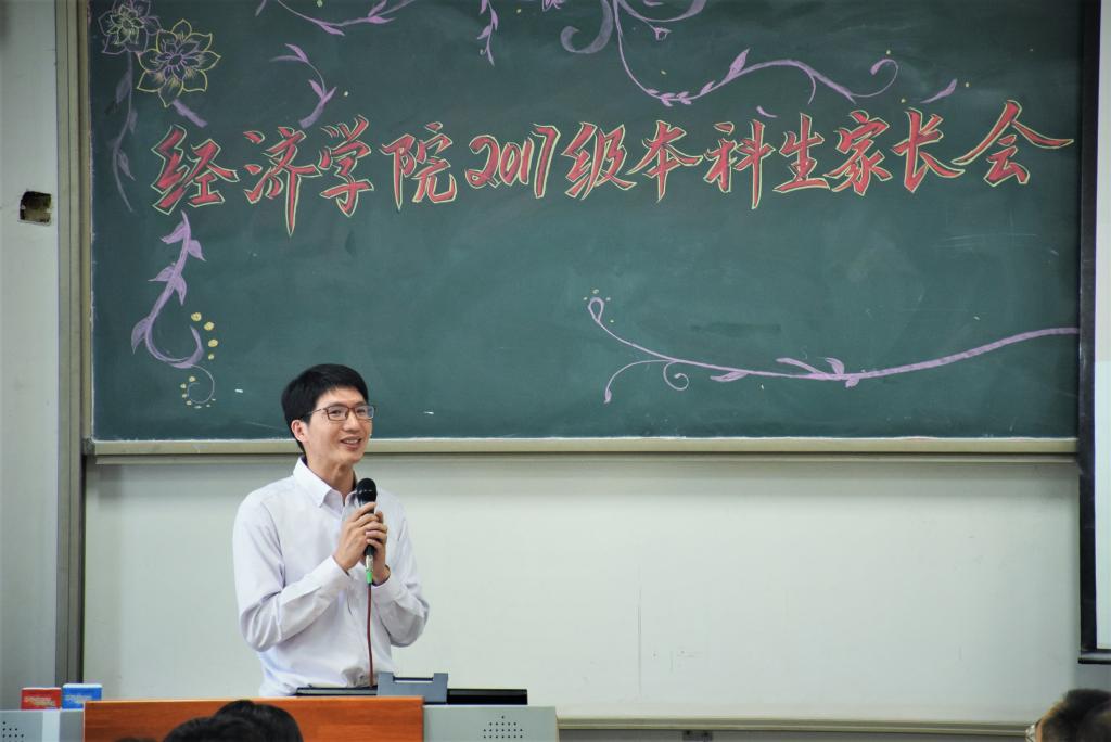 李涛院长发言结束后,陈斌开副院长为诸位家长简单介绍了学校和学院建校历史、校园环境及办学状况,重点介绍了999论坛白菜大全师资力量、特色品牌活动以及999论坛白菜大全保研情况。陈斌开副院长强调学生应主动与老师接触,充分利用999论坛白菜大全师生比高的优势,高质量地完成学业。