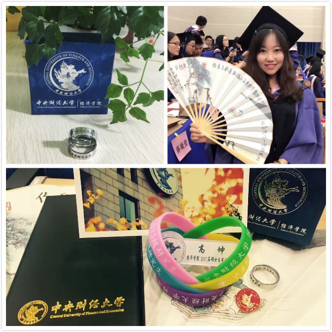 在本次毕业典礼中,999论坛白菜大全为毕业生准备了定制的毕业指环,刻印着每个学生名字的指环承载了学院与毕业生们的许诺,希望毕业生们把同学的情谊、老师的关爱、学院的深情戴在指间,朝着自己努力的方向越飞越高,欢迎“爱人们”常回来看看。同时,毕业生们也向同学和师长表达了内心的感激、不舍和祝福。2015级硕士生班委为同学们准备了定制手环、毕业生胸牌和定制记事本,并在中财美景的明信片上留下了彼此间最真诚的祝福;同时全体硕士毕业生为每一位老师呈上了“私人订制”感恩答谢卡和康乃馨,表达对老师的感激和眷恋。毕业时刻,感念师恩,每个毕业班都用自己的表达方式阐述了“经院予我,时光予你”的特殊意义。