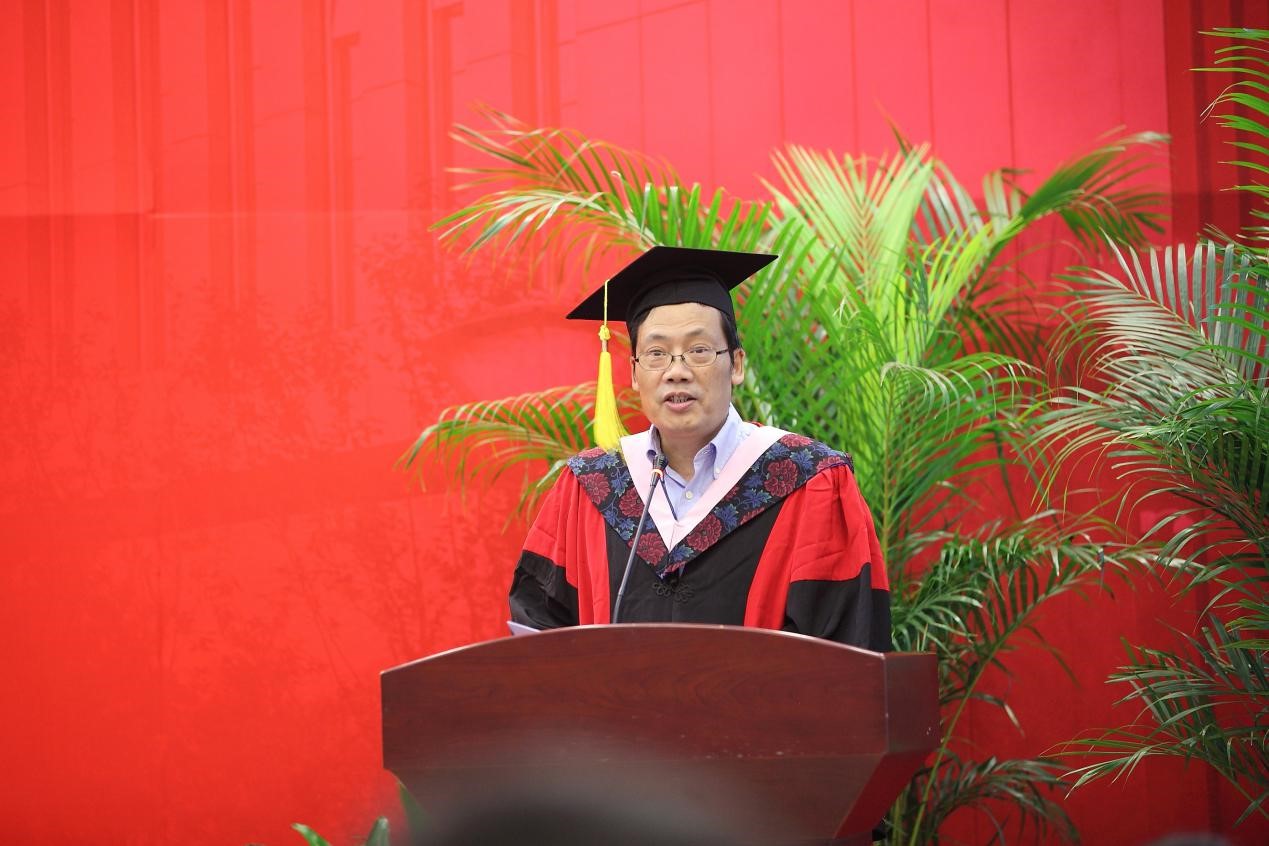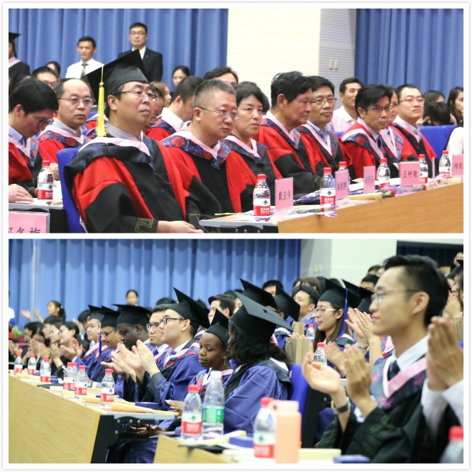 之后,副校长史建平教授为毕业典礼致辞。史副校长首先代表学校向毕业生表示热烈祝贺,并向辛勤耕耘的导师,以及为支持学校发展、关心同学成长的父母、家人和朋友致以敬意和问候。其次,史副校长对第一期商务部援外项目做了回顾与总结,表示该项目进一步提升了白菜官网对发展中国家人才培养的标准和层次,提升了白菜官网在财经领域的专业领先地位和国际化水平。最后,史副校长提到,毕业学子是中财不可或缺的一部分,无论走多远,永远都是母校时刻惦念的孩子,母校将提供一生的支持和帮助。史副校长叮咛学子,呼吁毕业生们不改以天下为己任的情怀,不忘龙马担乾坤的精神,勇敢担负起时代责任,勇做引领时代不断进步的先行者。