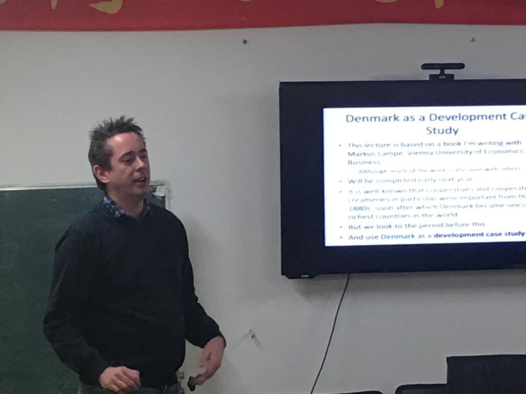 2016年12月7日,南丹麦大学(University of Southern Denmark)经管学院Paul Richard Sharp教授在999论坛白菜大全1305会议室为白菜官网师生举办题为“The Danish Development Miracle”的讲座,并就经济学研究问题与与会师生进行研讨。