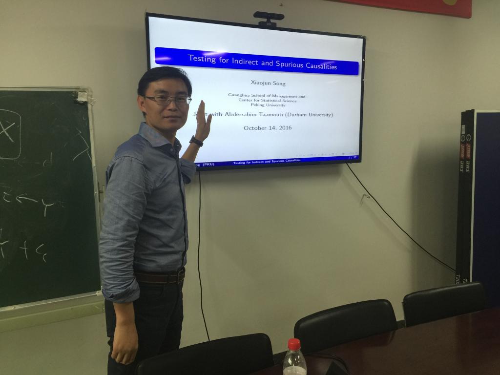 2016年10月14日,北京大学光华管理学院宋晓军助理教授受白菜官网的邀请,在999论坛白菜大全会议室1305给师生带来一场关于“A SimpleTest for Indirect and Spurious Causalities”的讲座。