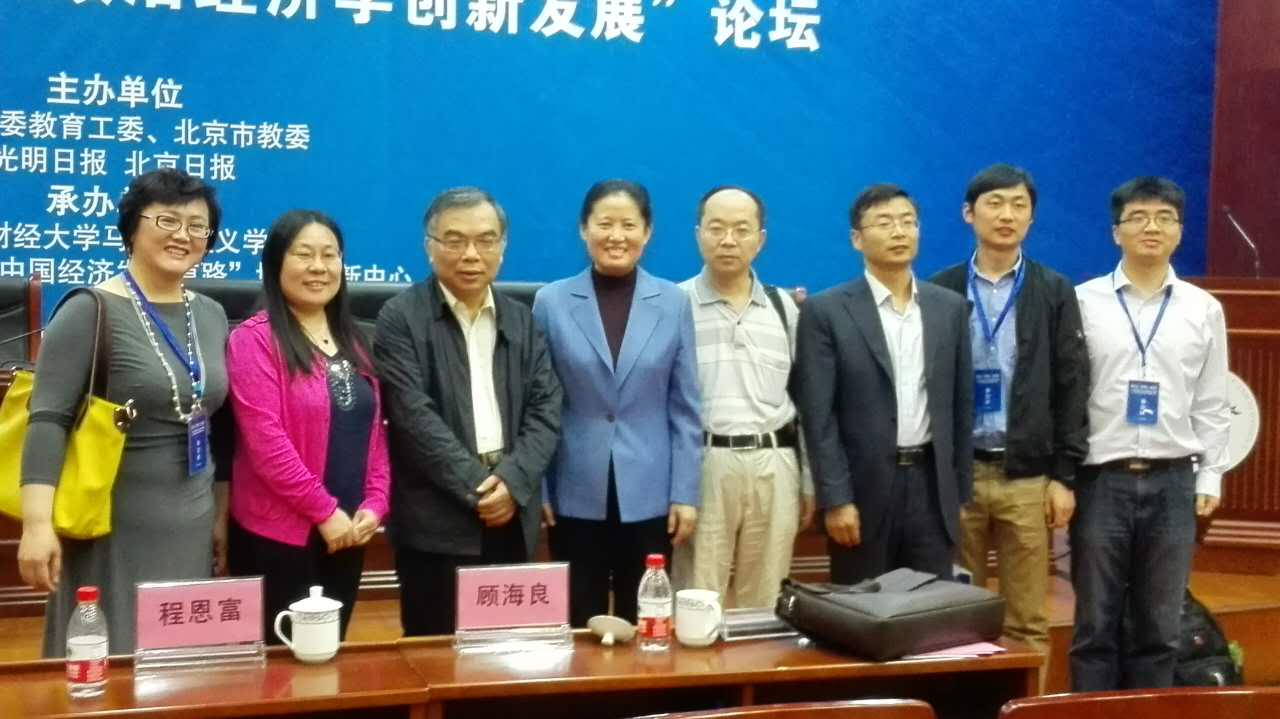 5月6日,白菜官网政治经济学系齐兰老师、冯春安老师、林光彬老师、韩金华老师、张维闵老师、尹志锋老师、何召鹏老师参加了于白菜官网举行的“北京高校中国特色社会主义理论体系研究协同创新中心授牌仪式暨中国特色社会主义政治经济学创新发展论坛”。在上午的专家主题报告环节,齐兰老师做了题为《新发展理念与中国经济及产业发展实践的新探索》的学术演讲;在下午举行的圆桌论坛上,林光彬老师做了题为《全球视野的中国政治经济学演进与创新发展》的学术演讲。两位老师的演讲内容详实,观点新颖,引起了与会师生的广泛共鸣。