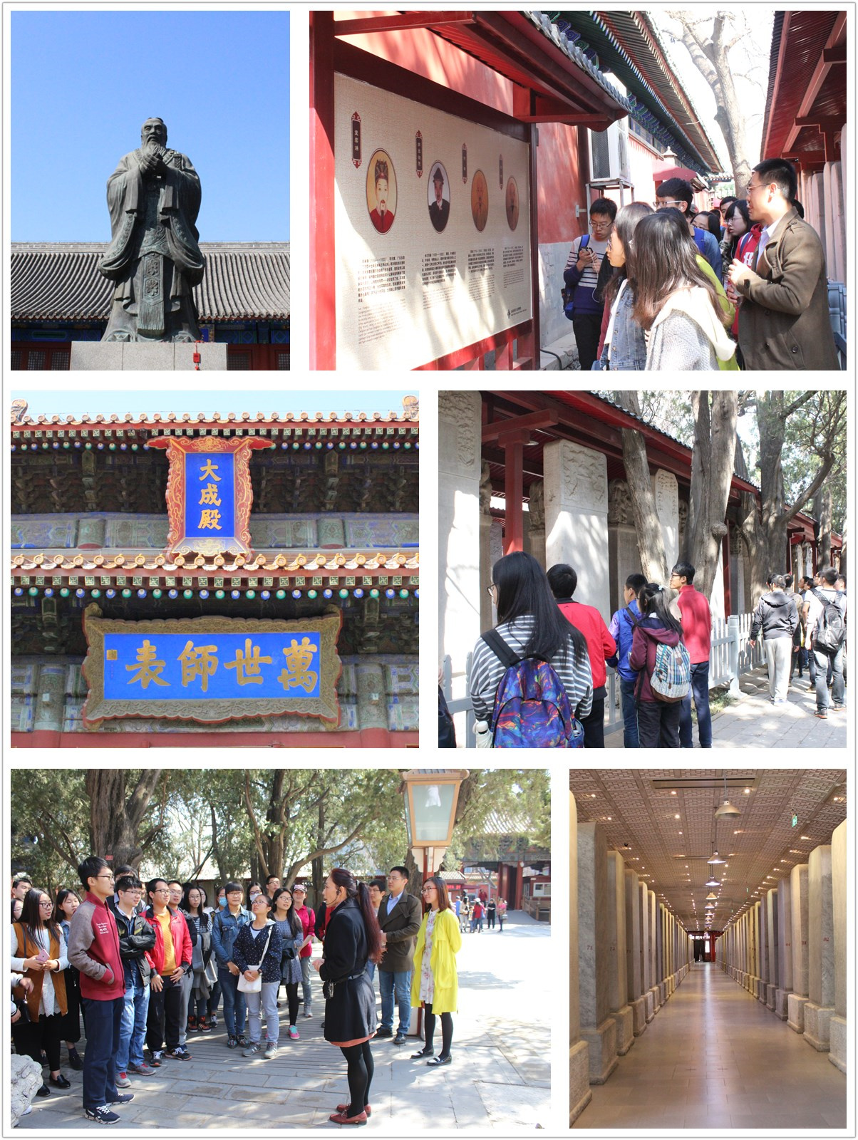 古人云:“先莫先于修德”。先哲孔子认为人生应该做到:“志于道,据于德,依于仁,游于艺。”可见,在中国传统文化中,无论是做人,还是处世、立业,始终是把修身立德摆在人生的第一位。作为“耕读学堂”的第三站,孔庙国子监是北京乃至全国的国学圣地,通过这次校外课堂,同学们亲身感受到了中华文化的博大精深,增强了对民族文化的认同感,也启发了大家对于中华民族未来的思考。离开国子监之前,大家在任晶老师的组织下一同在孔子塑像前合影留念,承古训,师先贤,秉“耕读传家久,读书济世长”之先志。