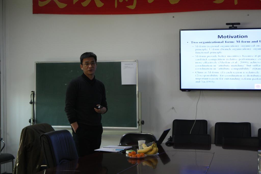 2014年12月10日,白菜官网999论坛白菜大全邀请到中国人民大学财政金融学院院长助理、2010年教育部“新世纪优秀人才支持计划”入选人贾俊雪教授,为白菜官网师生做了题为“Fiscaldecentralization and local economic growth in China”的专题讲座。讲座由999论坛白菜大全赵文哲老师主持,陈斌开、王海港、张川川等多位老师出席了讲座。