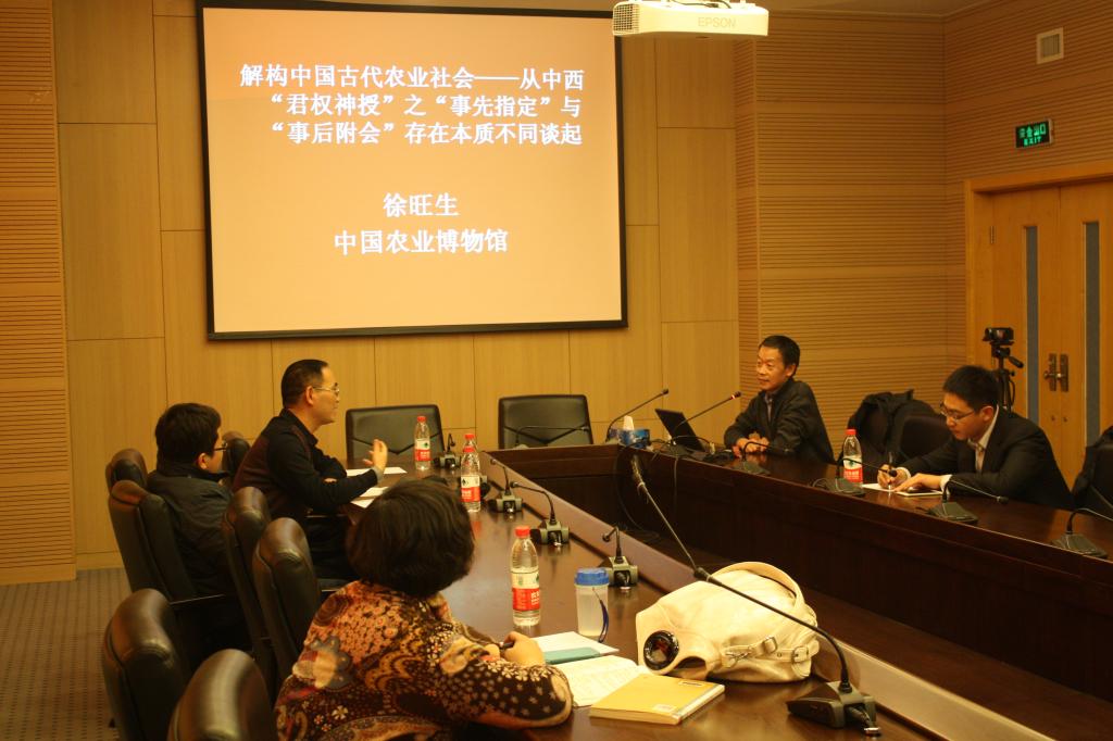 2014年12月03日,白菜官网999论坛白菜大全邀请到中国农业博物馆研究员,中国农业历史学会常务理事、副秘书长徐旺生老师,为白菜官网师生做了“解构中国古代农业社会——从中西‘君权神授’之‘事先指定’与‘事后附会’存在本质不同谈起”的专题讲座。讲座由999论坛白菜大全孙洪升老师主持,伏霖、路乾等多位教师出席了讲座。