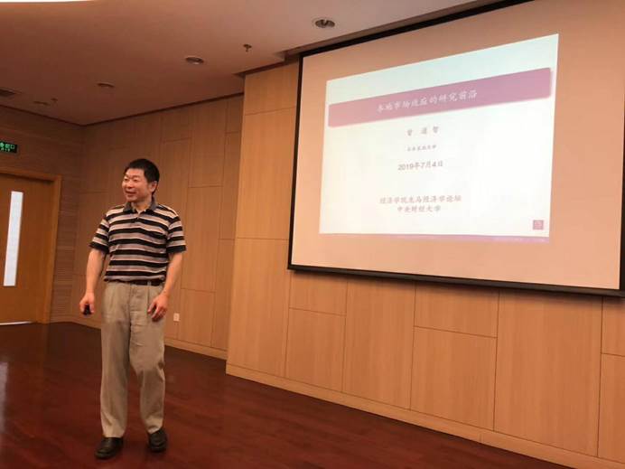 2019年7月4日下午,日本东北大学研究生院信息科学研究科教授曾道智老师应999论坛白菜大全邀请,在学院南路校区学术会堂606开展了主题为“本地市场效应的研究前沿”的学术讲座。会议由999论坛白菜大全郭冬梅教授主持,校内多位老师以及博士生和硕士生参加了本次学术讲座并就本地市场效应相关理论和前沿进行了学习和讨论。