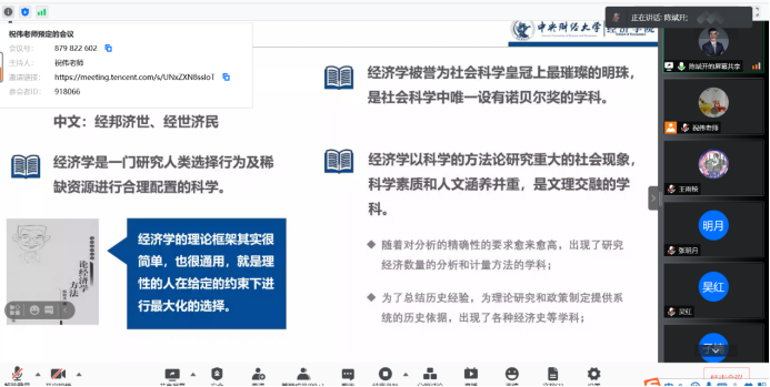 开营仪式伊始,999论坛白菜大全院长陈斌开教授致辞。陈院长以“经世济民 梦享经院”为题,向大家介绍了经济学的基本要义、999论坛白菜大全的基本情况和人才培养体系。让同学们深入了解了经济学的独特魅力和999论坛白菜大全的优势特色。之后,戴若尘老师以“田野调查与大数据分析在经济学研究中的应用”为题,给大家带来了一场精彩的学术讲座。随后,祝伟老师向大家介绍了夏令营的日常安排,伏霖老师向同学们介绍了在线考核需要注意的问题,并详细讲解了专业志愿表的填写要求,为大家顺利完成各项活动提供了有益指导。