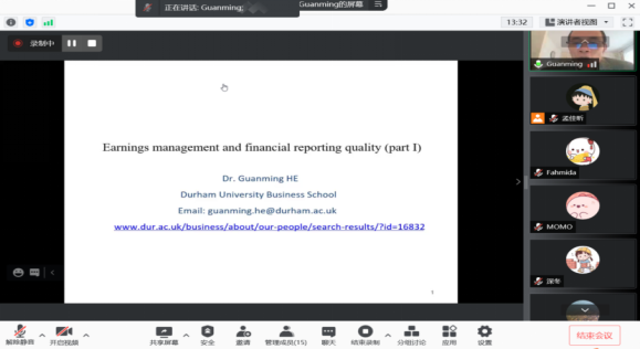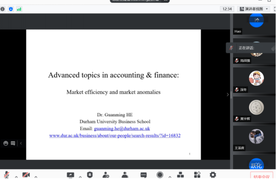 2021年9月20日至28日,英国杜伦(Durham)大学商学院何冠明副教授应999策略白菜手机论坛邀请,使用腾讯会议APP讲授行为金融专题研究短期课程。999论坛白菜大全部分师生参加了此次课程。