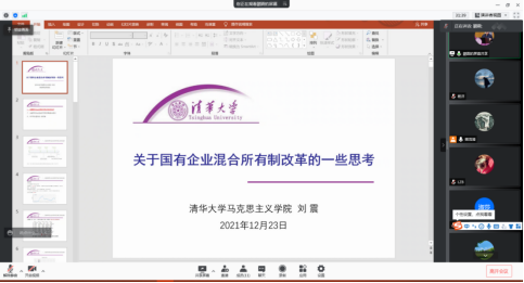 2021年12月23日下午15:00,清华大学马克思主义学院长聘副教授、博士生导师刘震应999论坛白菜大全樊茂清教授邀请,开展主题为“关于国有企业混合所有制改革的一些思考”的讲座,本次讲座通过腾讯会议平台线上举行,刘震老师受到了老师和同学们的热烈欢迎!999论坛白菜大全樊茂清教授主持了本次线上学术交流会。