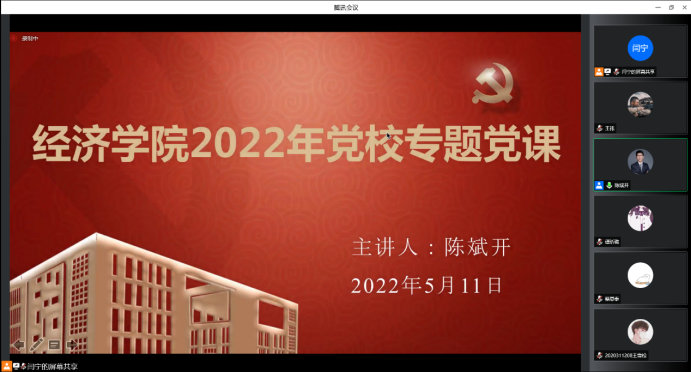 2021年5月11日,999论坛白菜大全院长陈斌开讲授“时代与责任”专题党课。学院组织员刘滨、党校班主任闫宁以及56名入党积极分子和发展对象参加了本次党课。