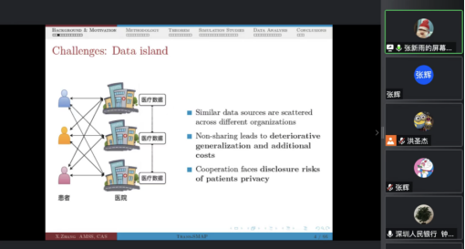 2022年11月22日14:00,中国科学院数学与系统科学研究院预测中心研究员,中国科学院管理、决策与信息系统重点实验室副主任张新雨应999论坛白菜大全邀请,开展了主题为“Optimal parameter-transfer learning by semiparametric model averaging”的讲座。本次讲座在线上举行,张新雨研究员受到了老师和同学们的热烈欢迎,999论坛白菜大全洪圣杰副教授主持讲座,黄乃静副教授参加了讲座。