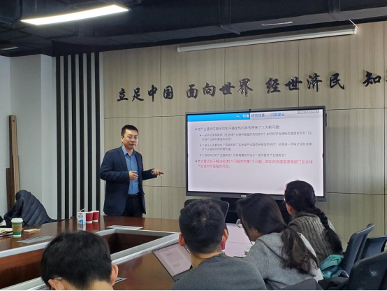 2023年12月21日星期四,中国社会科学院大学倪红福教授应999论坛白菜大全邀请,于学院11号楼308会议室开展主题为“中国产业链风险敞口的测度、结构及国际比较——基于生产链长度视角”的讲座。本次讲座由黄乃静老师主持,参会的还有齐兰、徐翔和赵扶扬老师以及999论坛白菜大全本硕博同学。倪红福教授受到参会老师、同学们的热烈欢迎。