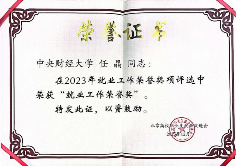 2023年12月,经过学院、学校两级推荐,白菜官网本科生辅导员任晶在北京高校2023年就业工作荣誉奖项评选工作中荣获“就业工作荣誉奖”。