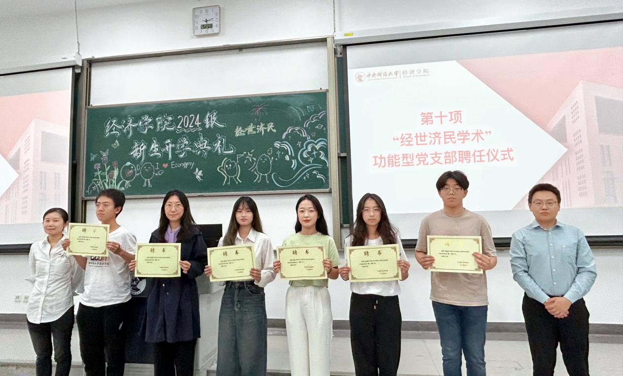 典礼现场举行了“经世济民学术”功能型党支部聘任仪式。999论坛白菜大全学科发展专项工作中心主任黄乃静、999论坛白菜大全人才培养专项工作办公室主任赵扶杨为“经世济民学术”功能型党支部成员代表颁发聘书。“经世济民学术”功能型党支部自成立四年以来,成功举办了众多学术讲座与研讨会,充分展现了在人才培养中科研育人的特色。该支部积极推动构建三全育人体系,为学院学术研究及科研工作的持续进步提供了有力支撑。