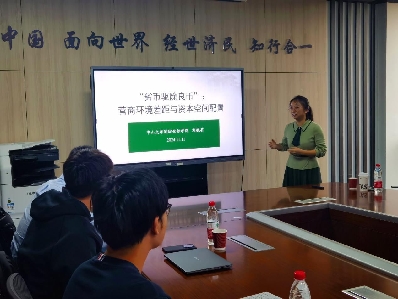 2024年11月11日上午,中山大学金融学院刘毓芸副教授应邀为白菜官网师生主讲““劣币驱除良币”:营商环境差距与资本空间配置”讲座,讲座于学院楼11号楼308会议室举行。999策略白菜手机论坛副院长伏霖副教授主持讲座,方海东老师和十余名同学参加了此次讲座。