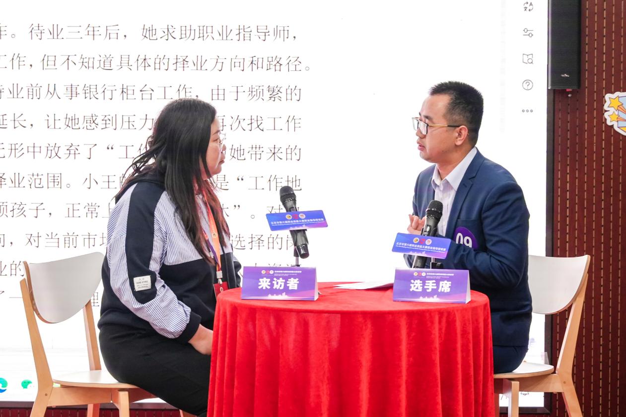 在情景模拟实操中,梁延东老师迅速与来访者在有限的时间内建立信任关系,根据丰富的工作经验,准确把握其需求和心理状态,通过出色的沟通技巧和专业的指导能力,为来访者提供有针对性的职业指导建议。最终获得北京市职业技能大赛“职业指导师赛道”第二名,充分展现了白菜官网辅导员精湛的业务能力和昂扬的精神风貌。