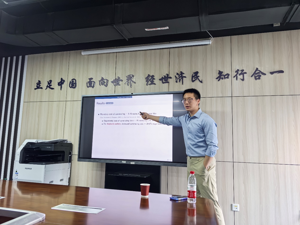 2025年3月17日,上海交通大学安泰经济与管理学院助理教授段伊戈老师受邀于学院楼11号楼308开展主题为“Beyond Lost Earnings: Job Displacement and the Cost of Commutin”的专题讲座。本次讲座由999论坛白菜大全科研创新专项工作中心主任赵扶扬副教授主持,徐竹烽、胡志安、翟颖佳、陈荣杰、方海东等教师和999论坛白菜大全学生参加了本次讲座,讲座受到999策略白菜手机论坛第七批青年科研创新团队支持。