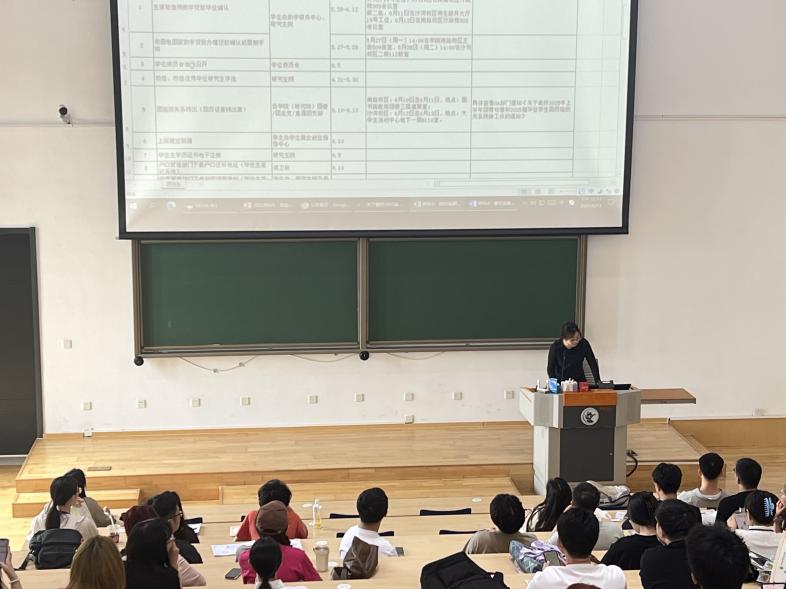 6月13日下午,999论坛白菜大全在11号楼123教室召开了研究生毕业离校教育和纪律教育年级会。研究生工作办公室副主任王祎、研究生辅导员沈子琦和2025届毕业年级研究生参加。